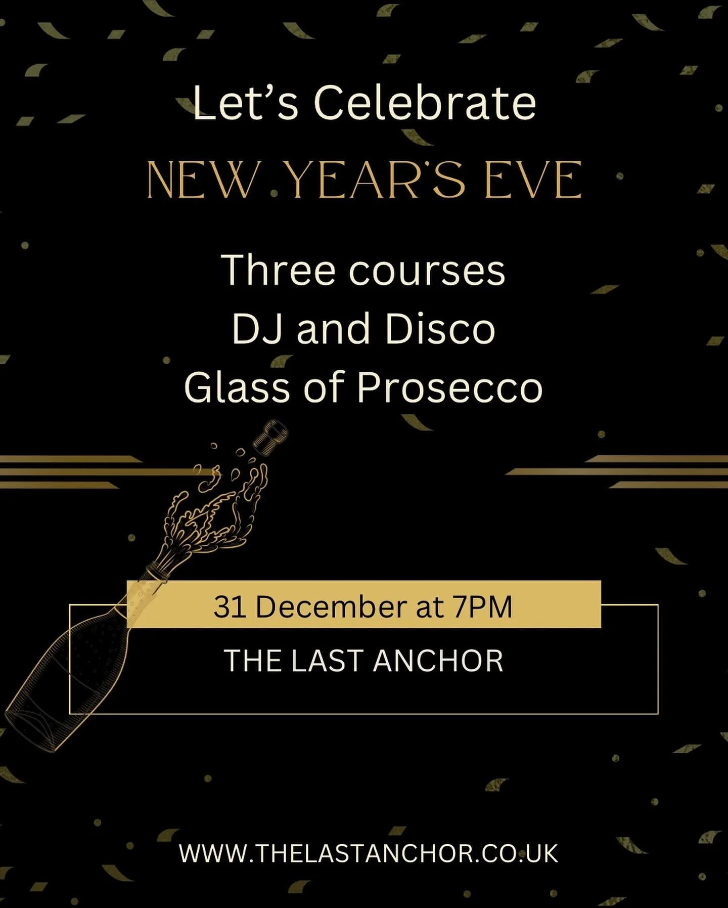 Welcome in the new year with friends and family and enjoy a three course meal, a disco, DJ and a glass of wine of Prosecco to see in 2026!
