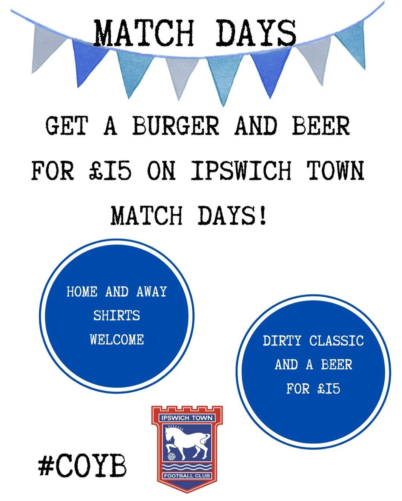 We’re just a stones throw away from Portman road, which makes us the perfect place to come before you watch the game!