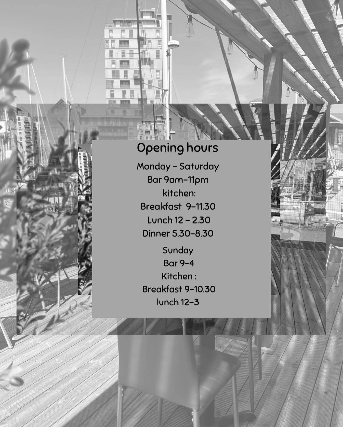 Between 12-4pm we are closed due to a private function, back open from 4 and starting dinner service at 5.30pm!