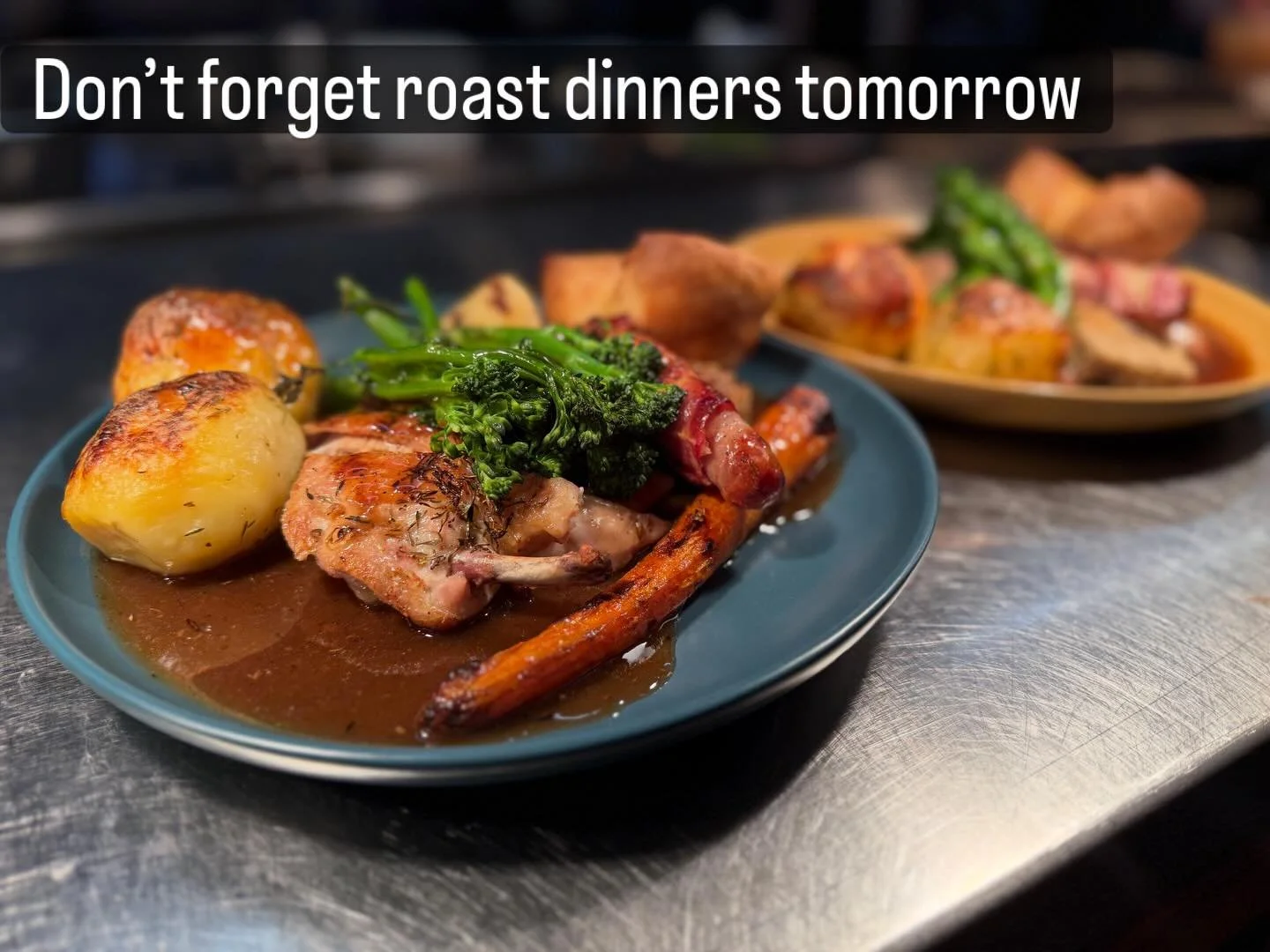 We serve roast dinners every Sunday… we change our menus every 6-8 weeks and on the menu at the minute: