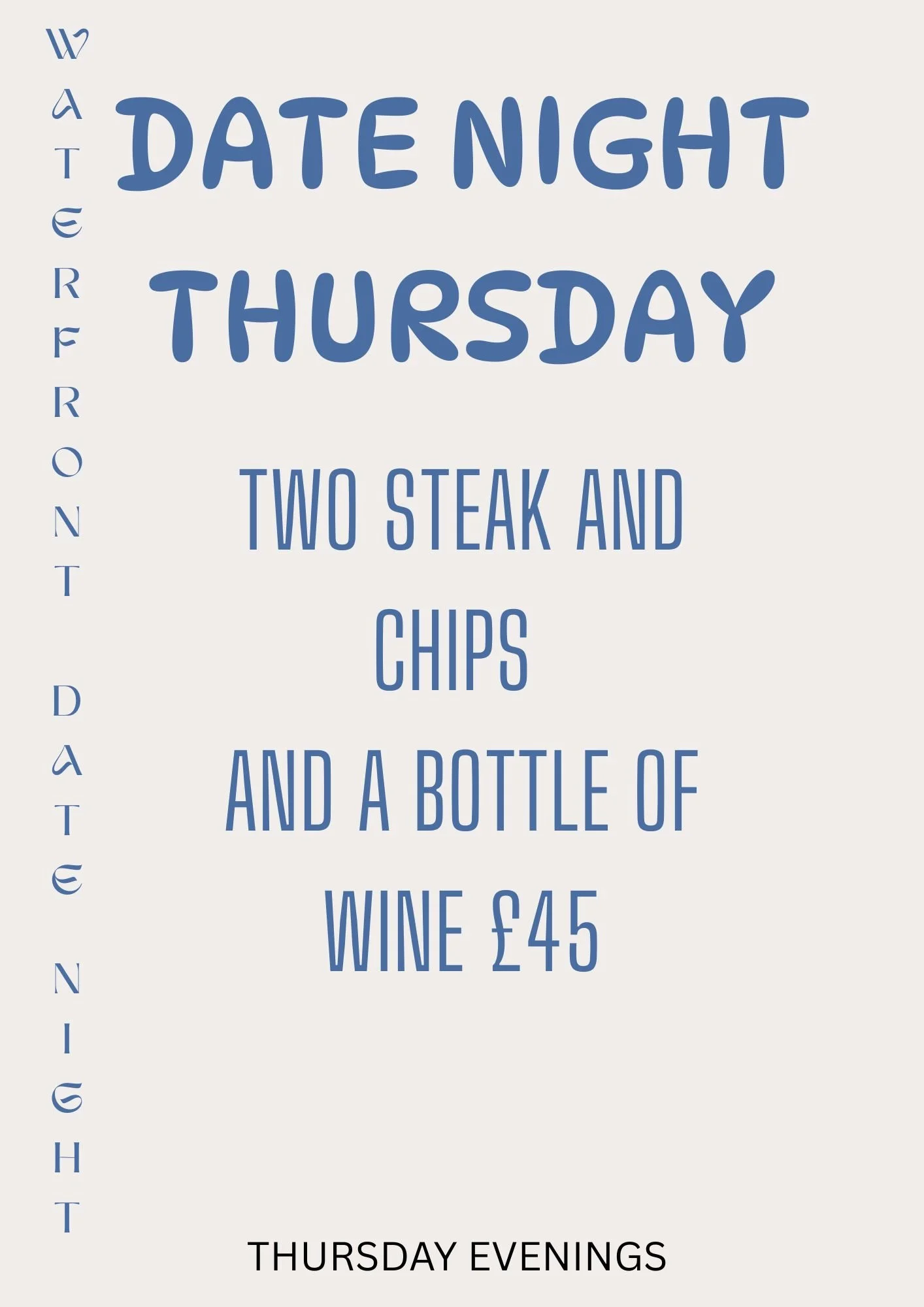 Date night down on the waterfront, just got better, enjoy 2 steaks, and a bottle of wine for just £45