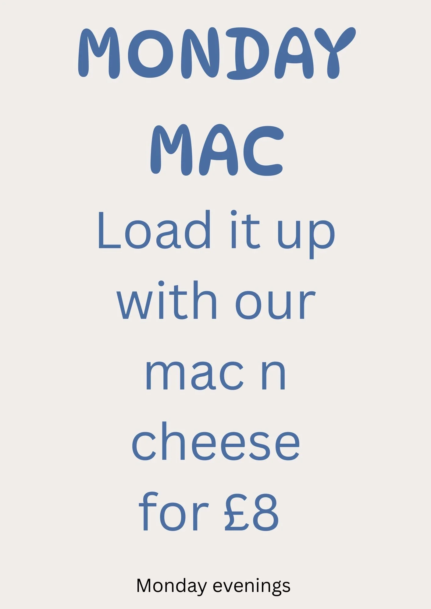 Enjoy Our loaded MAC N CHEESE for just £8 Monday evenings
