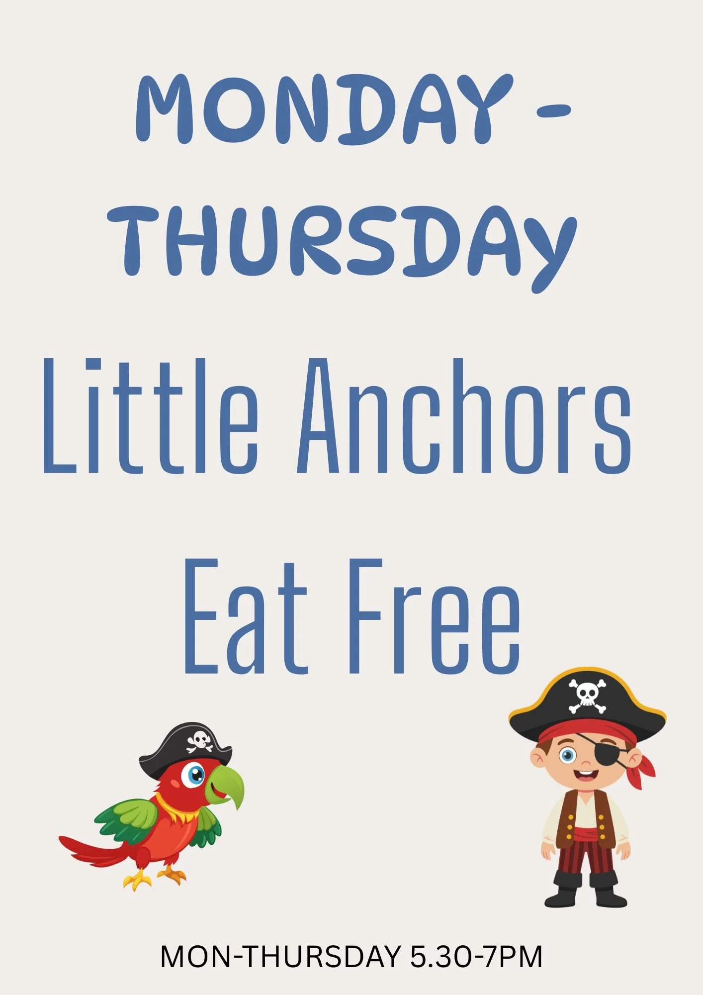 Little Anchors eat free, when dining with a full paying adult